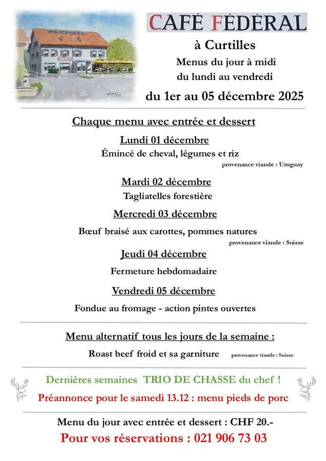 Visitez le Café Fédéral à Curtilles et vivez une expérience culinaire unique !